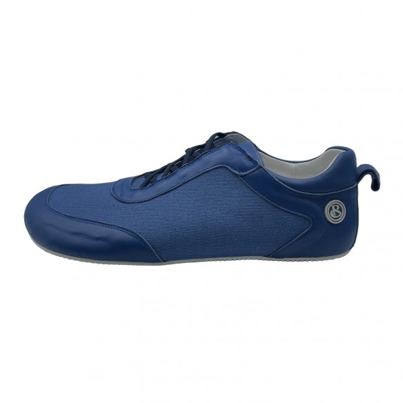 Barefoot sneaker made of natural bovine leather with cotton canvas.
