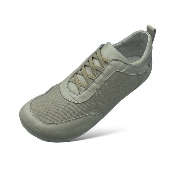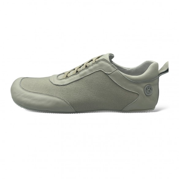 Barefoot sneaker made of natural bovine leather with cotton canvas.