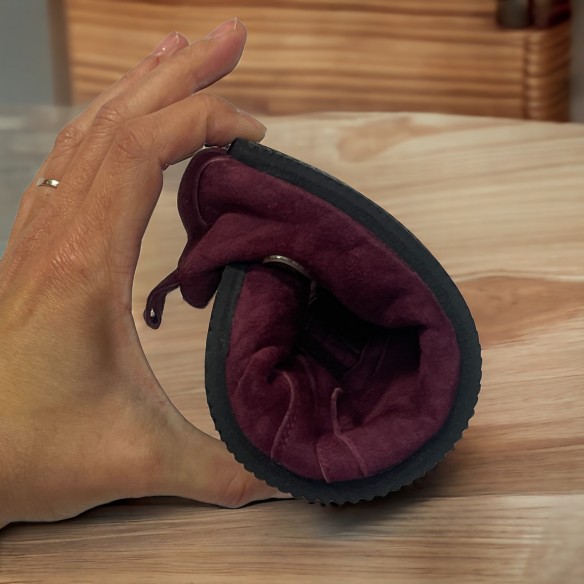 ✅Exterior en piel de ante natural de color burdeos.